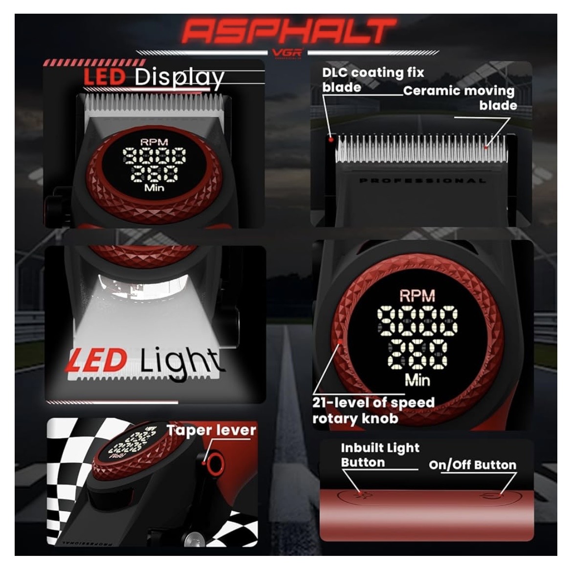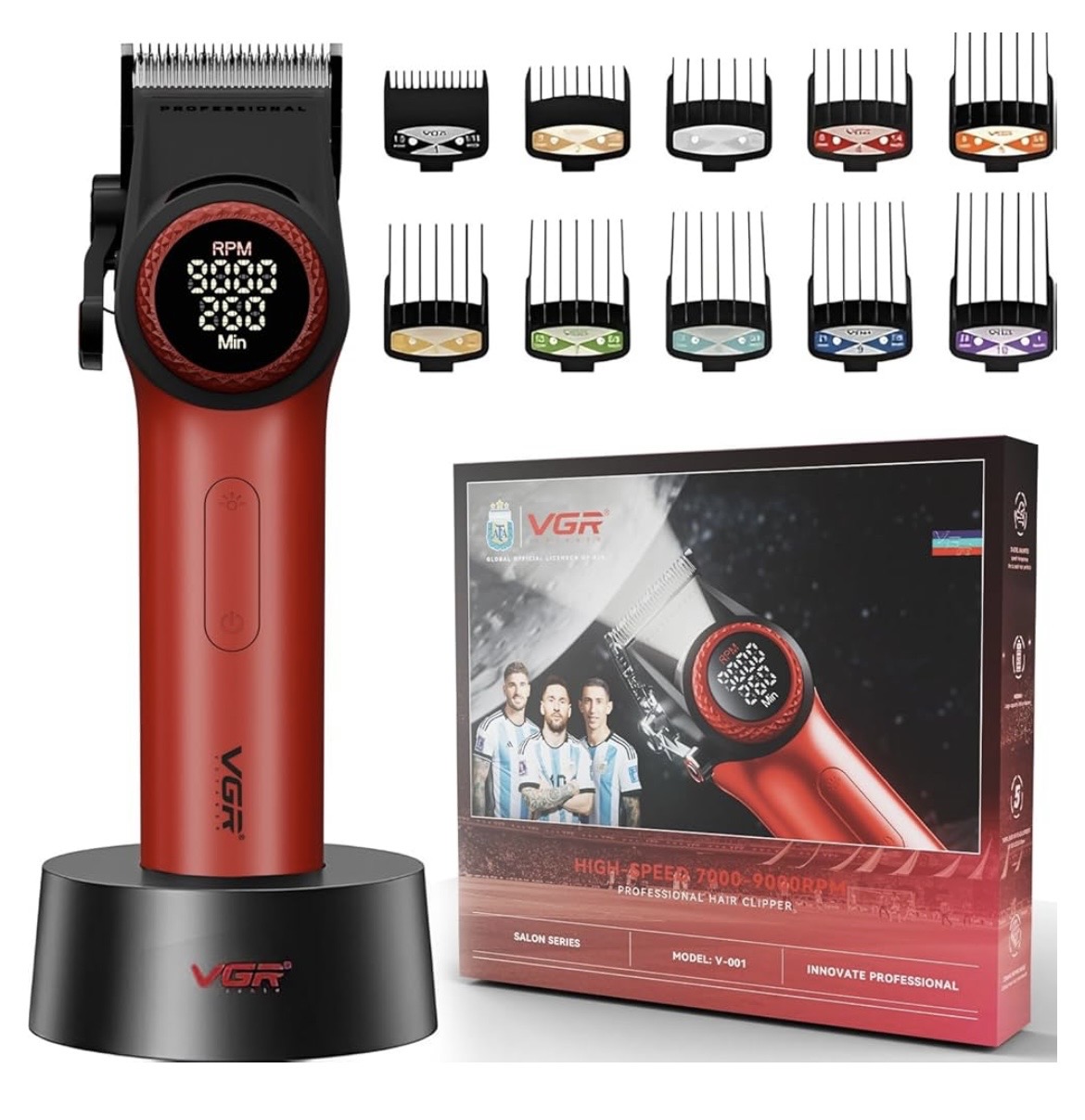 ماكينة الحلاقة الاحترافية من VGR بتقدم لك تجربة حلاقة متكاملة بجودة صالونات الحلاقة، سواء للاستخدام الشخصي في البيت أو للشغل الاحترافي في الباربر شوب. تصميم عصري باللون الأحمر المعدني مع شاشة رقمية ذكية يديك تحكم كامل وقوة أداء ثابتة في كل مرة.